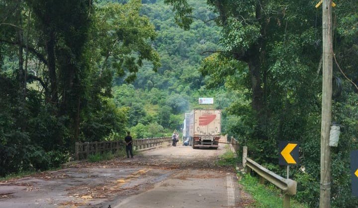 SUSTO: Carreta quase cai na ponte de Santa Bárbara na ERS 431