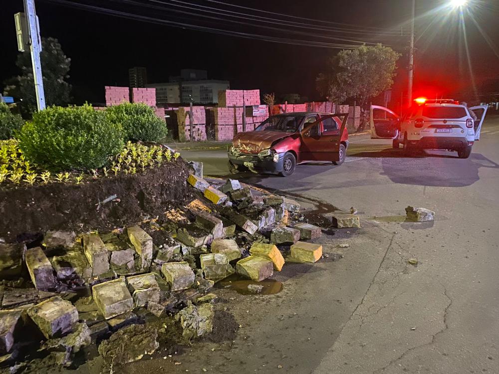 Homem de 37 anos bateu seu carro em uma rótula na área central de Farroupilha. Ele pagou fiança e foi liberado na delegacia.