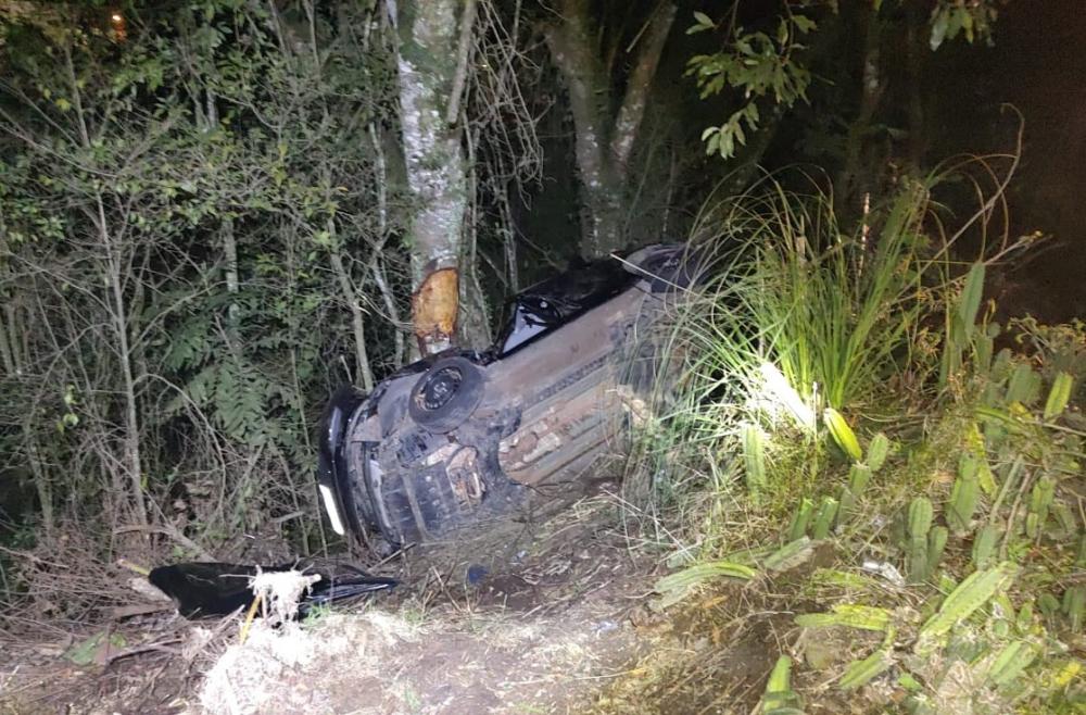 Carro com placas de Bento Gonçalves sofre capotamento na RSC 453