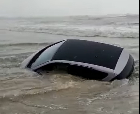 Ladrões abandonam automóvel submerso na praia em Capão da Canoa
