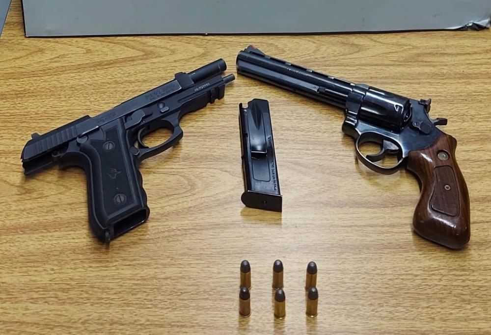Além de estar descumprindo determinação judicial, apenado de 26 anos estava ameaçando pessoas com um revólver e uma pistola em um estabelecimento comercial.