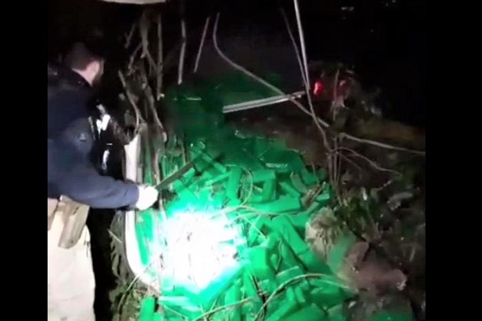 Criminoso transportava a droga em uma Mitsubishi L 200, conseguiu fugir do cerco policial e depois colidiu contra uma árvore. Ele escapou da prisão pelo mato.